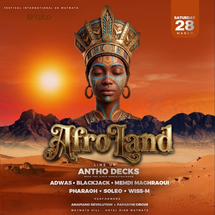 Le Festival International de Matmata vous donne rendez-vous pour un événement exceptionnel : AFRO LAND, une expérience musicale unique qui promet une ambiance explosive au cœur du sud tunisien.
